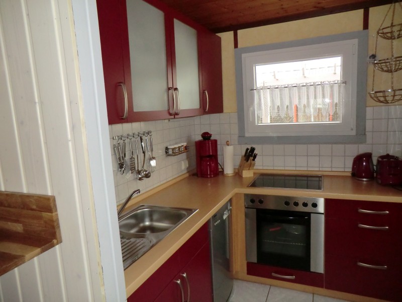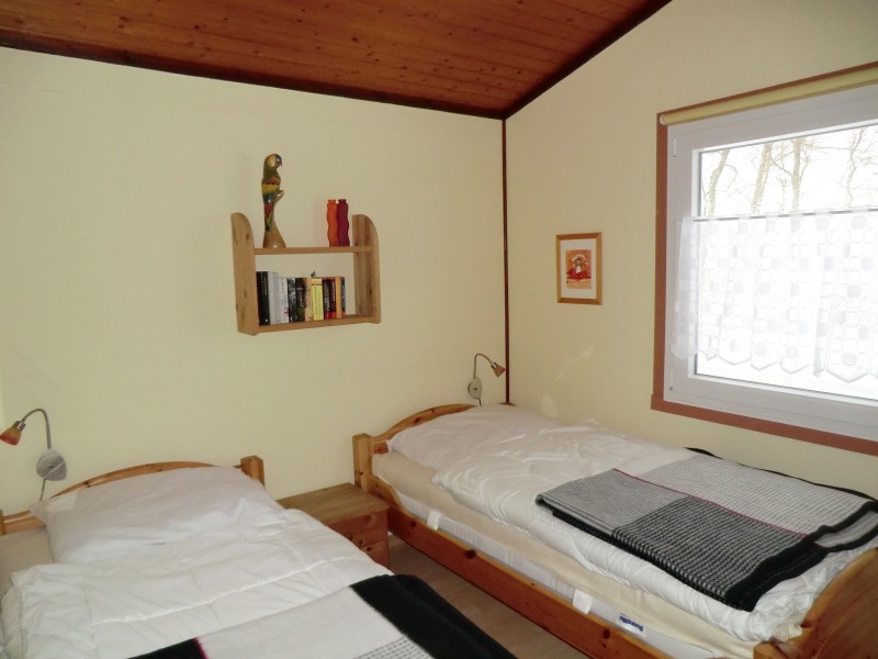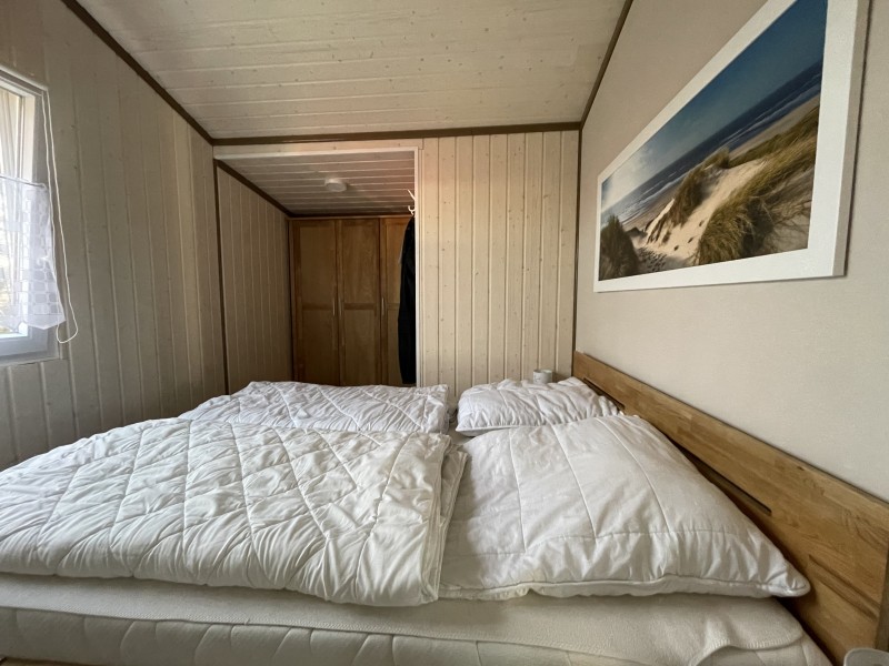 Sie wohnen auf 50 m² in unserem komplett eingerichteten Ferienhaus für 4 Personen. Im Wohnzimmer lädt eine bequeme Sitzgarnitur zum Verweilen ein. Im Winter verwöhnt Sie die Wärme eines Kaminofens. (Holz ist im Preis nicht enthalten.) Das Haus verfügt über 2 Schlafzimmer (eins mit Doppelbett 1,60 m x 2 m, und ein weiteres mit zwei Einzelbetten 1,00 m x 1,90 m). Wohn-Esszimmer, Küche mit Geschirrspüler, Kühl-Gefrierkombination, Backofen mit Ceranfeld, Mikrowelle und Waschmaschine sowie ein Bad mit Dusche und WC. Sonnige möblierte Terrasse mit Strandkorb.