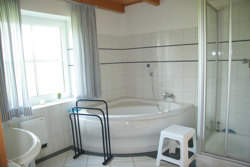Sanitäre Ausstattung: Jedes Schlafzimmer mit direktem Zugang zum eigenen Badezimmer (Dusche und WC Komforthöhe); Whirlpool vorhanden.