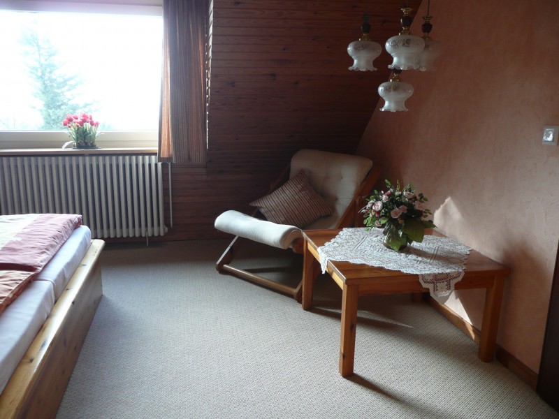 Die komfortable Ferienwohnung ist 70 qm groß und liegt im 1. Stock. Sie besteht aus einem Schlafraum mit Doppelbett (2 Matratzen), einem Schlafraum mit getrennten Betten, einem separaten Wohnzimmer mit Sitzgruppe und SAT-TV/CD,