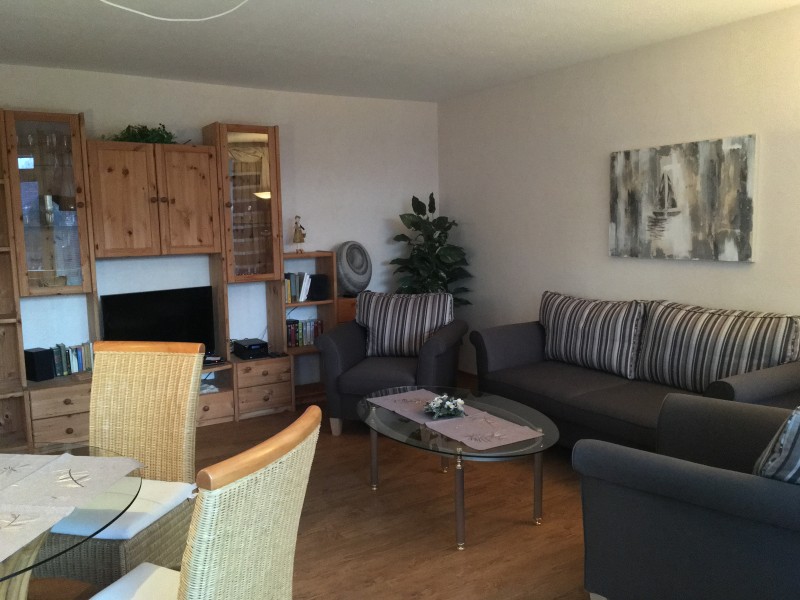 Die geschmackvoll eingerichtete Ferienwohnung ist ca. 87 qm groß. Vor dem Wohnzimmer befindet sich ein überdachter Balkon mit Gartenmöbeln. Sie besteht aus dem Flur, einem großen Wohnzimmer mit separater Essecke, 2 Schlafräumen (Doppelbett), eine sep. Küche (Einbauküche) sowie einem Bad mit Badewanne (Duschvorrichtung) und WC. Weitere Angaben: Farb-TV (Sat), Videorecorder, Stereoanlage mit Bluetooth, Bettwäsche und Handtücher incl., Wasserkocher, Mikrowelle, Espressomaschine. Die Ferienwohnung liegt im Parterre. Internetzugang über WLAN möglich.