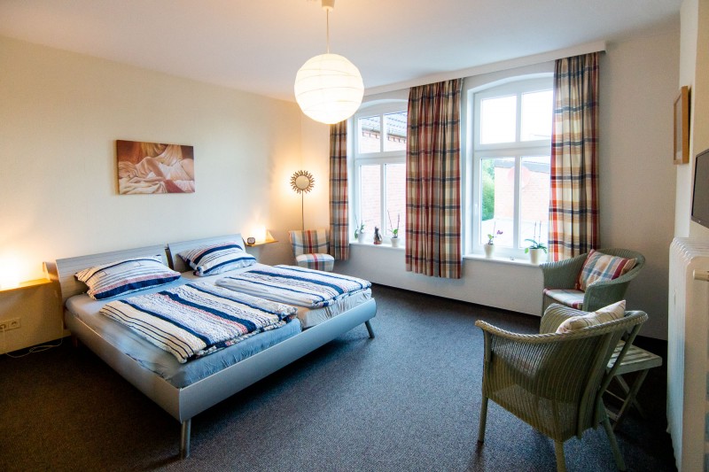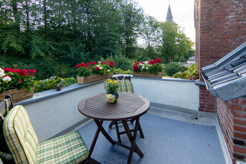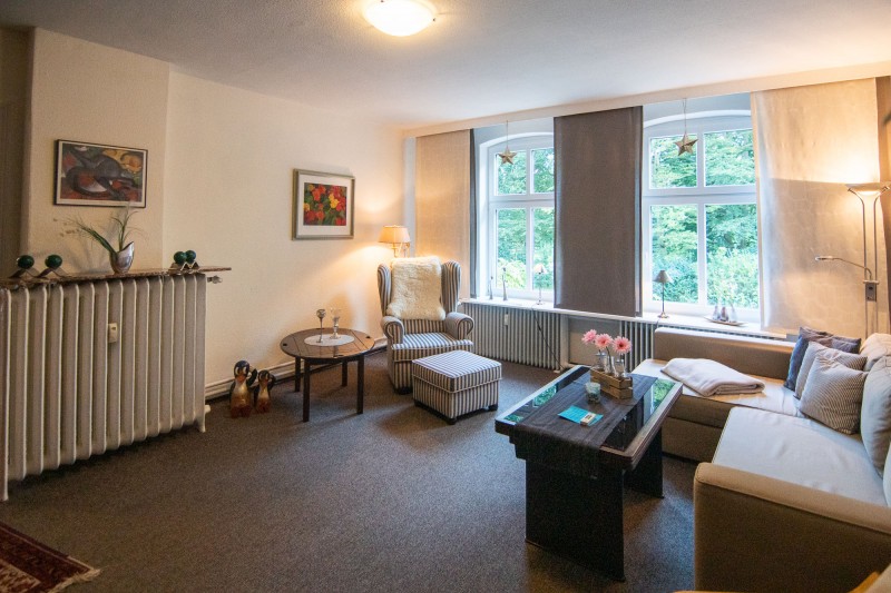 Unsere Nichtraucher-Fewo. mit separatem Eingang liegt in der 1. Etage eines alten Stadthauses direkt gegenüber vom Schloßgarten. Die ruhige Sackgassen-Lage und der Blick vom Balkon in den Park, versprechen einen erholsamen Urlaub. Die großzügig geschnittene Wohnung bietet Platz für 2 Personen. Ein Doppelbett im Schlafzimmer und ein Schlafsofa (1,40x2,00) im Wohnzimmer. Die Küche ist komplett ausgestattet, incl. Geschirrspüler. Auch sonst gibt es in der 2009 renovierten Wohnung jeglichen Komfort: 48"Sat-TV, DVD, Radio mit CD und Internetzugang über W-Lan. Im hinteren Garten haben Sie die Möglichkeit zu grillen. Vor dem Haus befinden sich Parkplätze.