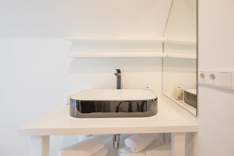 Das Duschbad mit der großen Sauna lädt zur Entspannung ein. Im Hauswirtschaftsraum steht Ihnen eine Waschmaschine zur Verfügung.
