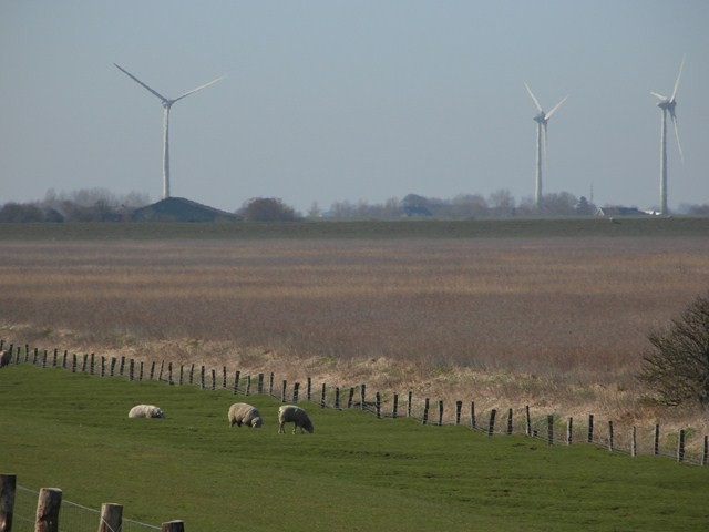 Moin,Moin von der grünen Halbinsel Nordstrand inmitten des Nationalparks Schleswig-Holsteinisches Wattenmeer.