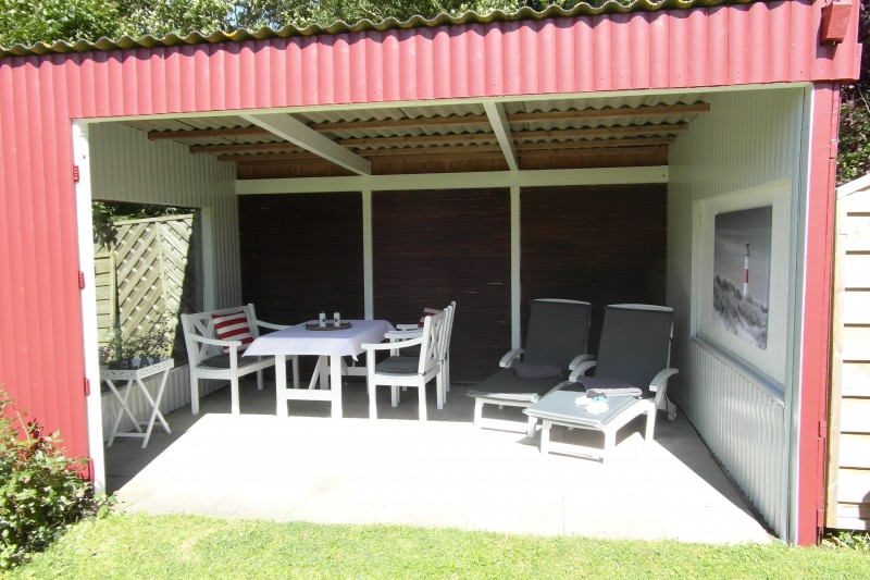 Hinter dem Haus erwartet Sie der große Garten mit einer Terrasse und Strandkörben! Hier steht Ihnen ein Elektrogrill zur Verfügung.