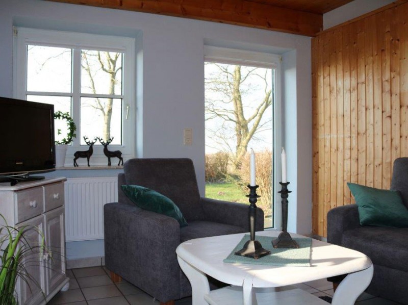 Als wohnlicher Kontrast zum nordisch-klaren Stil der Einrichtung sind alle Zimmerdecken mit rustikalem Holz getäfelt. Mehr als seinen Reisekoffer muss niemand mitbringen: Die Einbauküche ist mit allen üblichen Utensilien ausgestattet. Das Bad, Wohn- und Schlafzimmer sind komplett eingerichtet inklusive Bettwäsche und Handtücher. Fernseher, Radio, WLAN-Netz, Mikrowelle, Backofen und Geschirrspüler sind vorhanden.