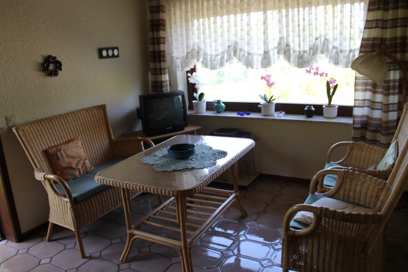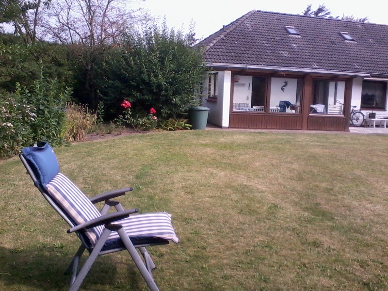 Hinter dem Haus findet sich eine große Liegewiese und ein Wintergarten, die gerne mitbenutzt werden können. Gartenmöbel stehen im Sommer zur freien Verfügung.