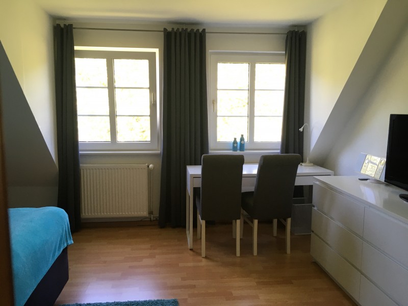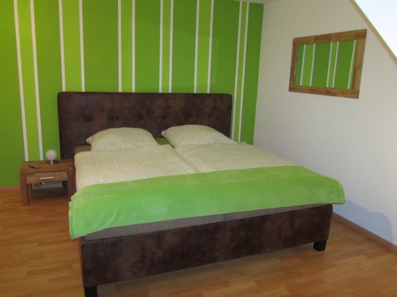Die Ferienwohnung liegt in der ersten Etage eines Einfamilienhauses. Zwei Zimmer mit je zwei Doppelbetten (1 Doppelbett kann umfunktioniert werden zu 2 Einzelbetten) bieten Platz für bis zu 4 Personen. Die Zimmer sind gemütlich und modern eingerichtet. Neben den Schlafzimmern steht ein Wohnzimmer, eine Küche sowie ein Badezimmer zur Verfügung. Die Küche ist komplett ausgestattet und eignet sich somit perfekt, um ein ausgiebiges Frühstück zu genießen oder auch nach Belieben Abends zu kochen.