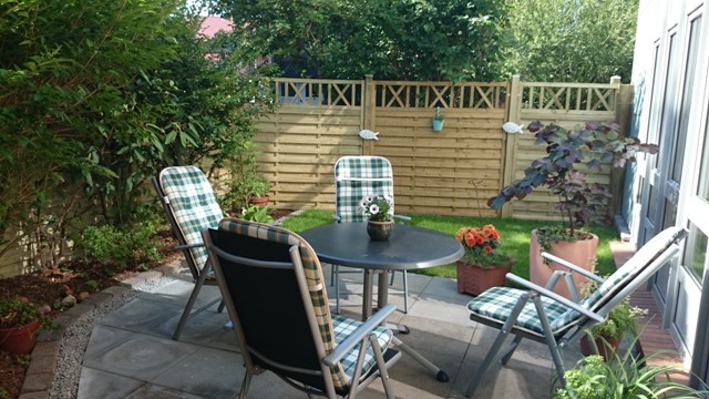 Vom Wohnraum haben Sie Zugang zur Terrasse mit Gartenmöbeln.