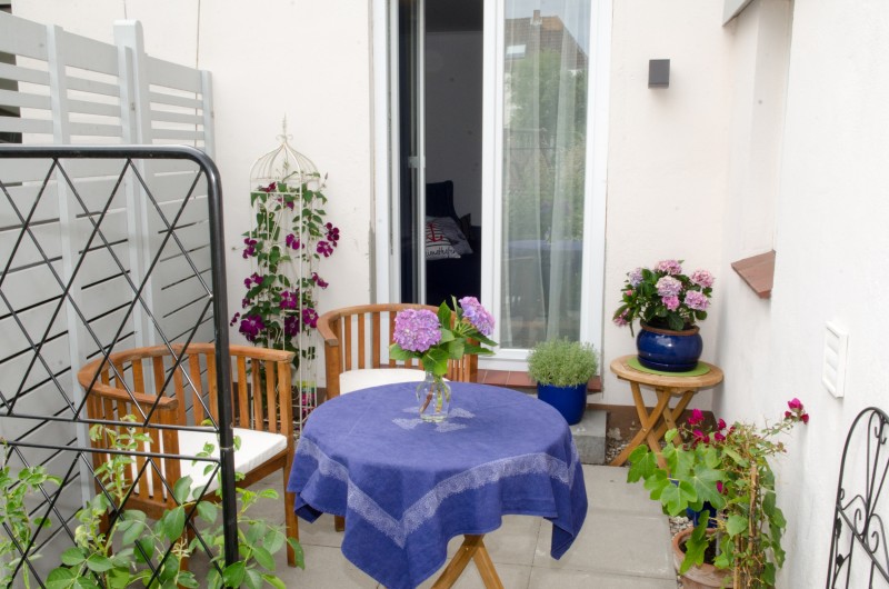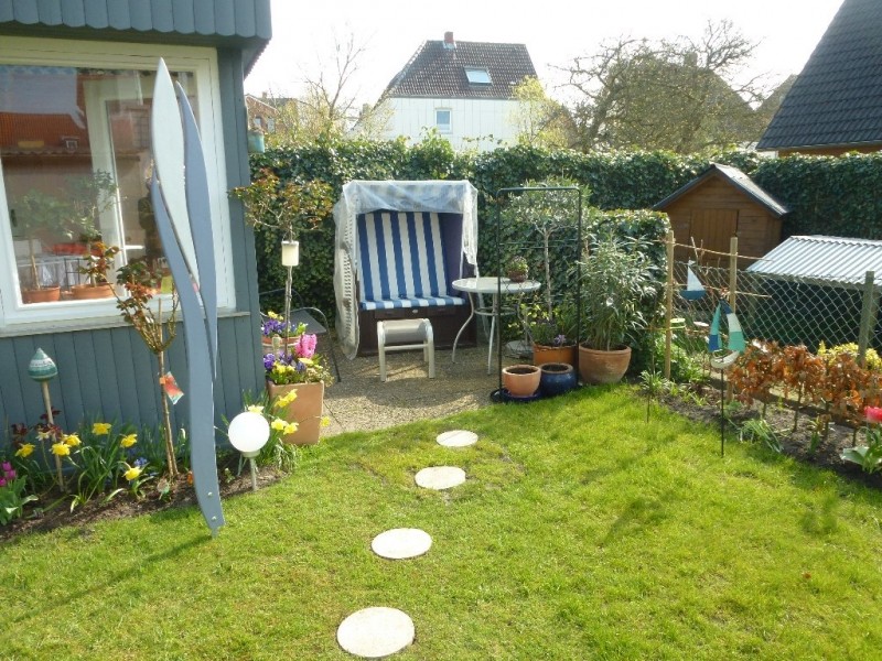 Möbel und Auflagen für die maritime Terrasse vorhanden Gartenbenutzung mit Strandkorb möglich.