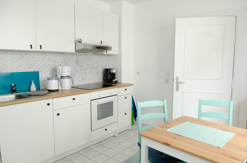 Küche: Unsere separate, geräumige Küche mit Esstisch ist ausgestattet mit Cerankochfeld und Backofen, Kühlschrank, Wasserkocher, Toaster, Kaffeemaschine, Espressomaschine, Eierkocher, Rührgerät und umfangreichem Koch- und Essgeschirr.
