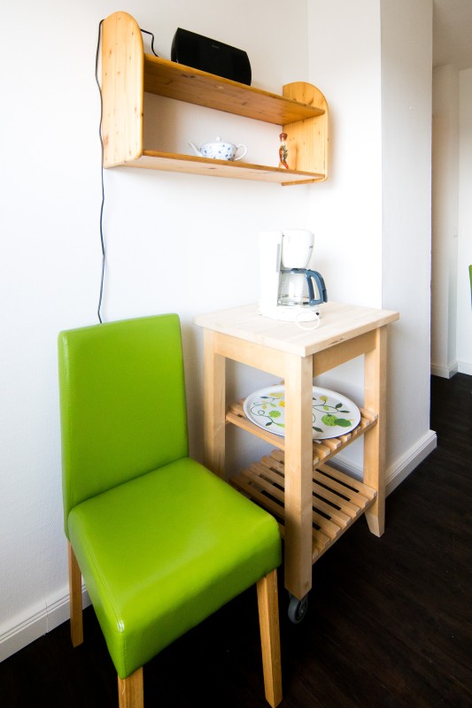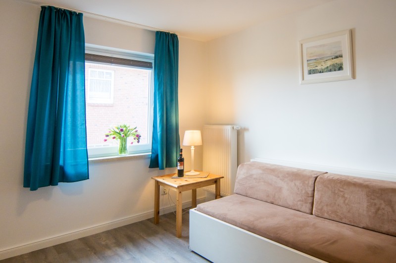 Diese gemütliche Wohnung liegt im 1.OG des Hauses. Sie verfügt über ein kombiniert nutzbares Wohn-Schlafzimmer, ein Dusch-bad mit WC, ein Durchgangszimmer, eine Ess-Küche und eine bestuhlte Terrasse im hauseignen Dünengarten.